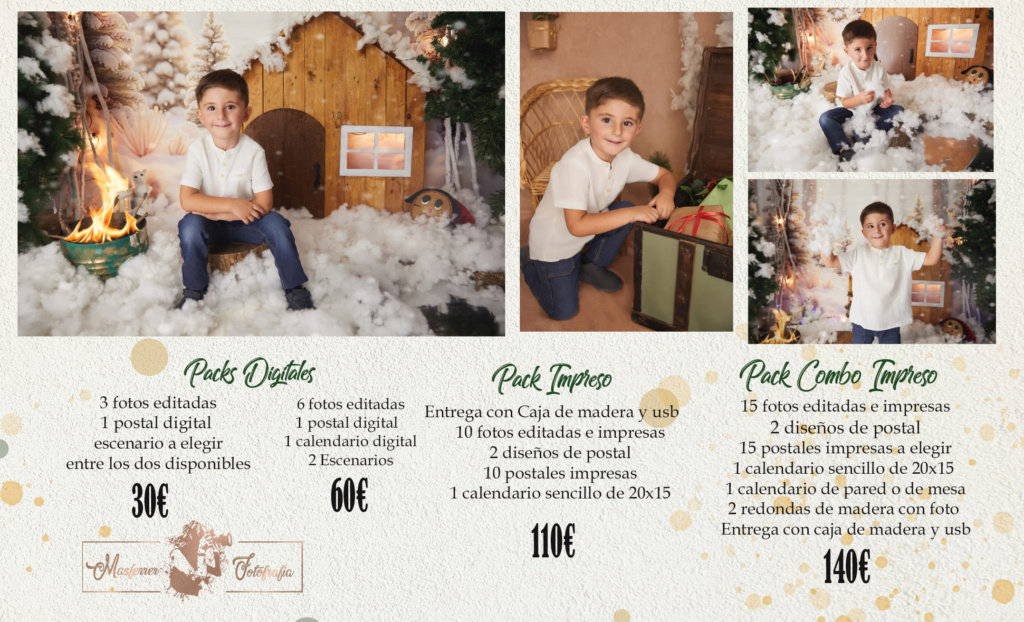 - Para Newborn, realizaremos alguna foto en escenario de Navidad, igual que las sesiones de embarazo, pero este tipo de sesiones disponen de otros packs.